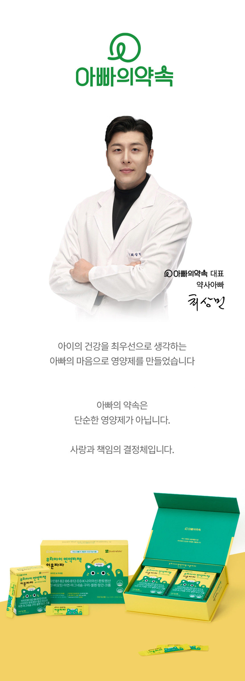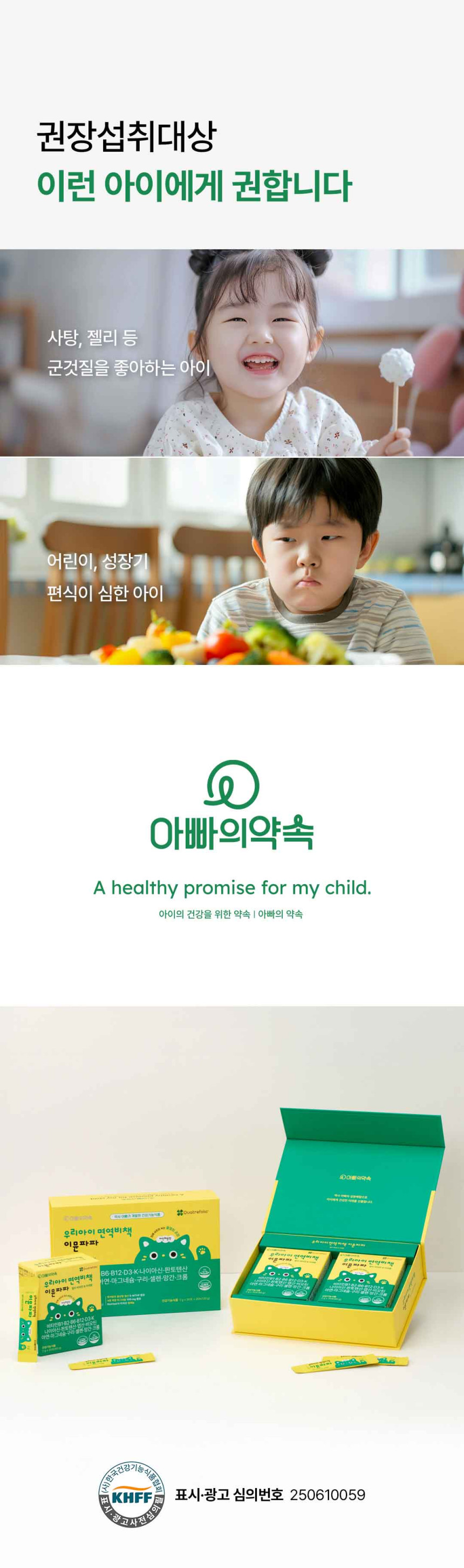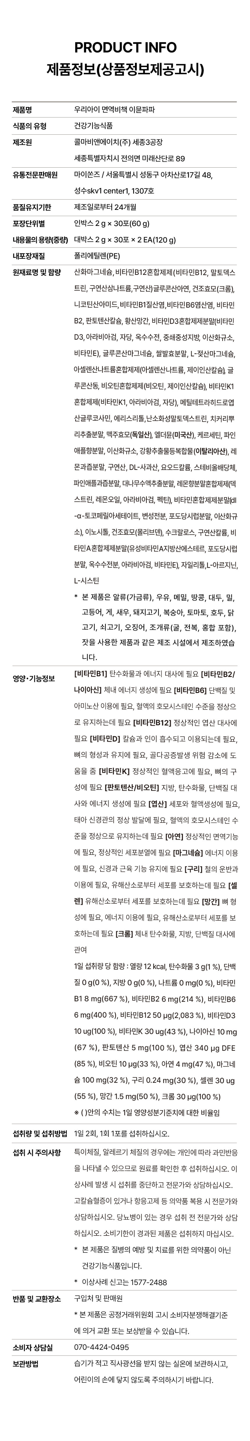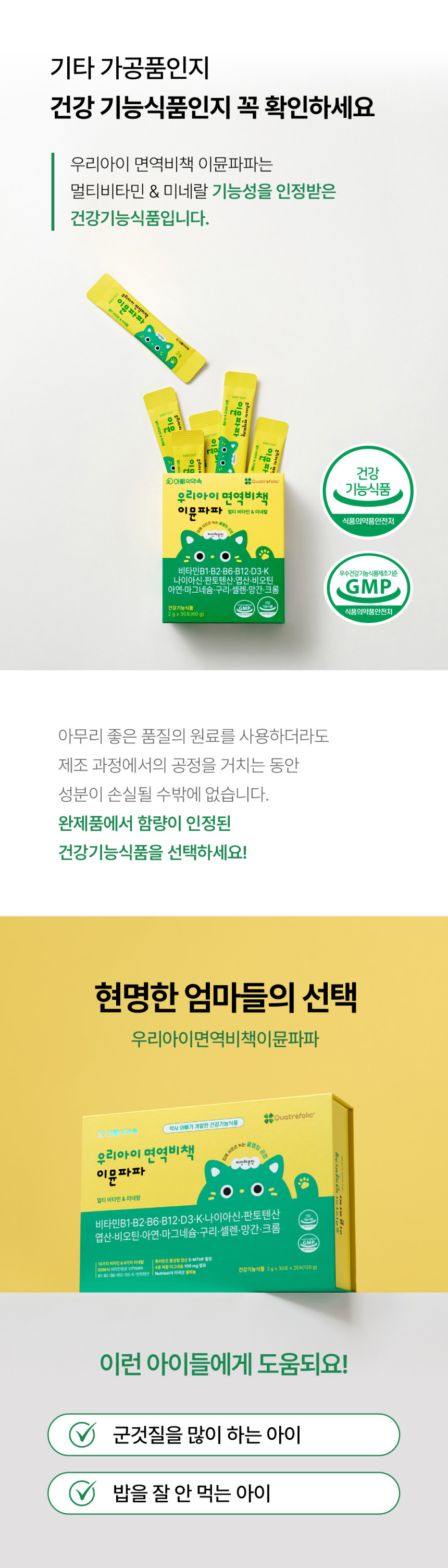 - "9가지 미네랄과 12가지 비타민을 한포에 간편히 섭취로 아이들의 면역과 염증제거 해결