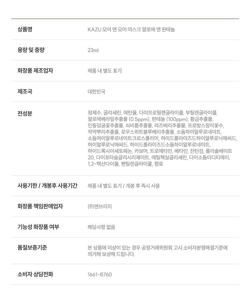 • 카주 모어 앤 모어 마스크 알로에 앤 판테놀