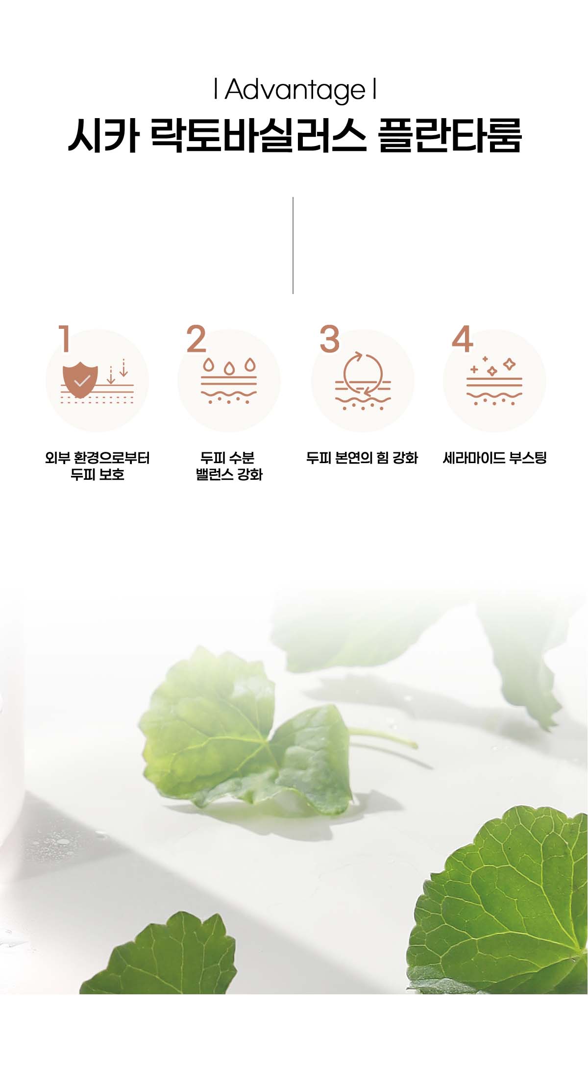 - 병풀에서 분리된 유산균 성분으로 두피 진정 및 두피 보호에 도움을 줌