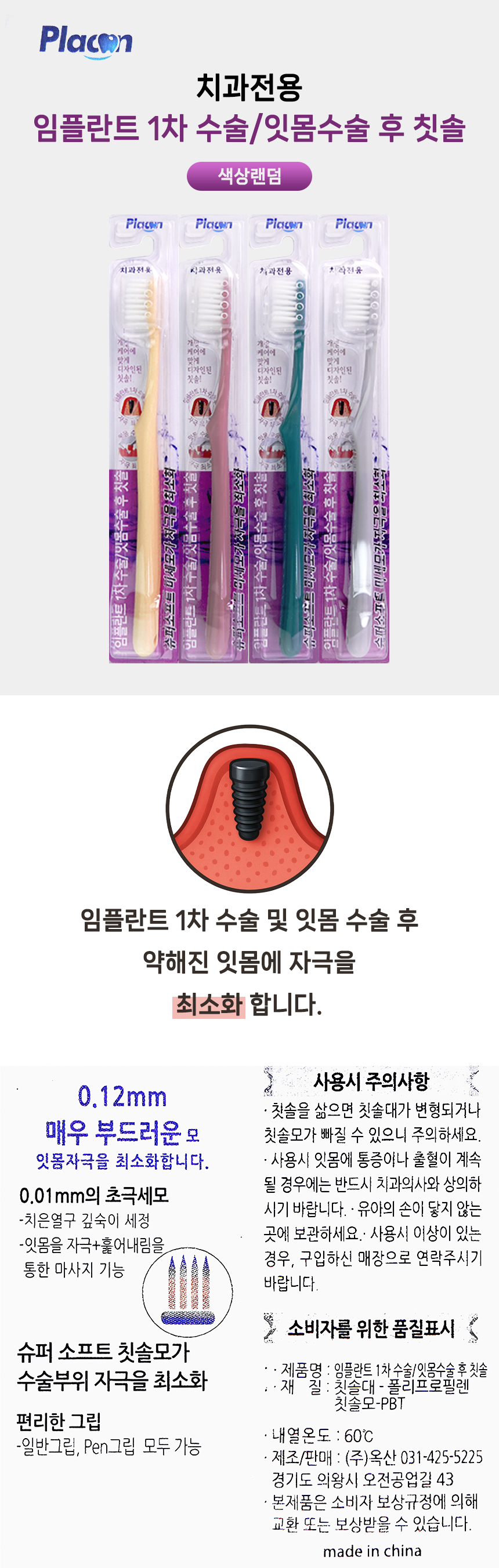 플라콘 클리닉 임플란트1차 수술 및 잇몸수술 칫솔 (색상랜덤)
