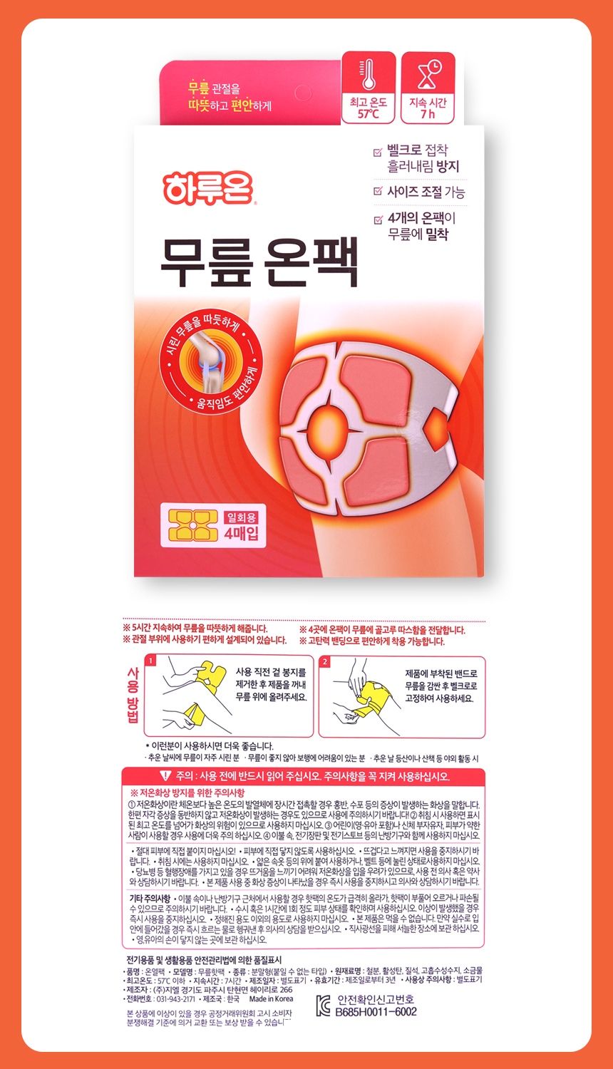 하루온 무릎온팩 일회용 4매입 온열팩 무릎핫팩