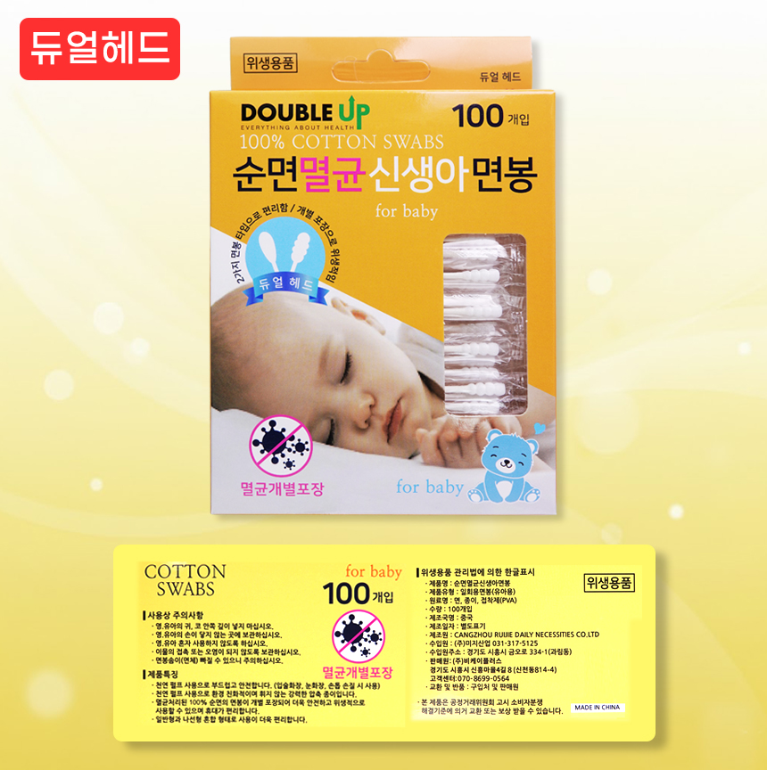 NEW 더블업 순면 멸균면봉 100 (멸균개별포장/신생아용) 세트