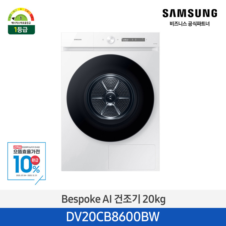 삼성전자 건조용량 20kg, 화이트 건조기 DV20CB8600BW