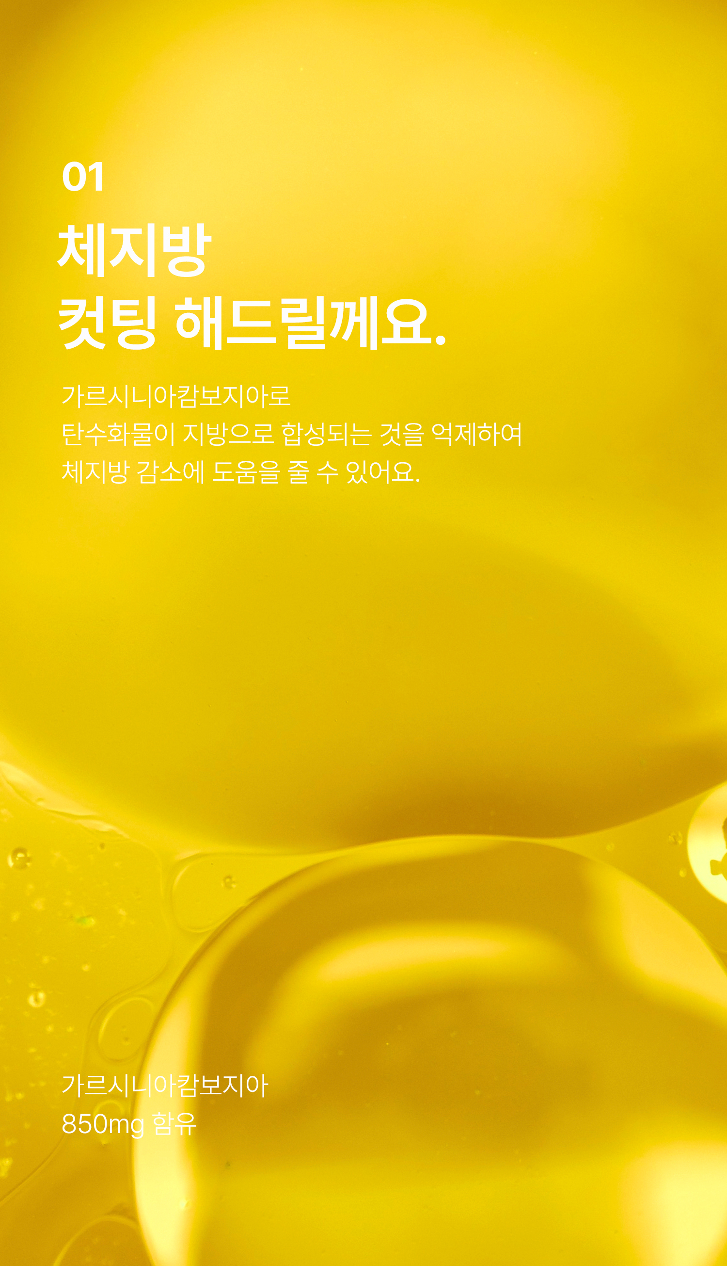-가르시니아로 체지방 아웃, 판토텐산으로 칼로리 아웃, 프로바이오틱스로 숙변 아웃. 다이어트에 꼭 필요한 세가지 기능성