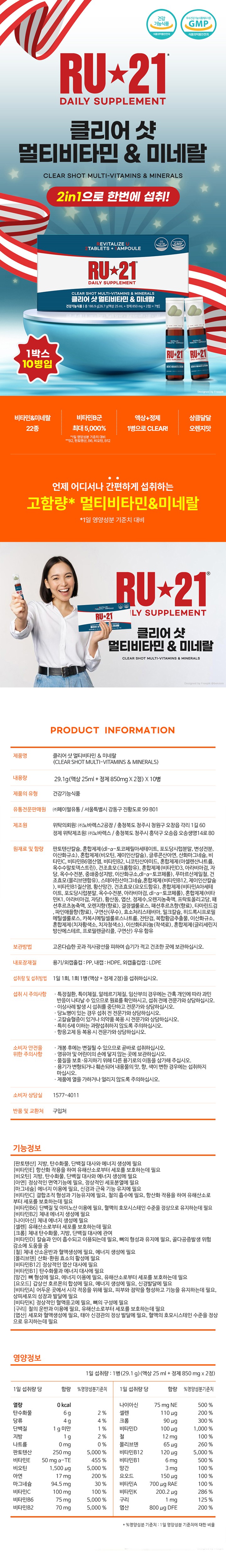 RU21 클리어샷 멀티비타민&미네랄 (알유21)