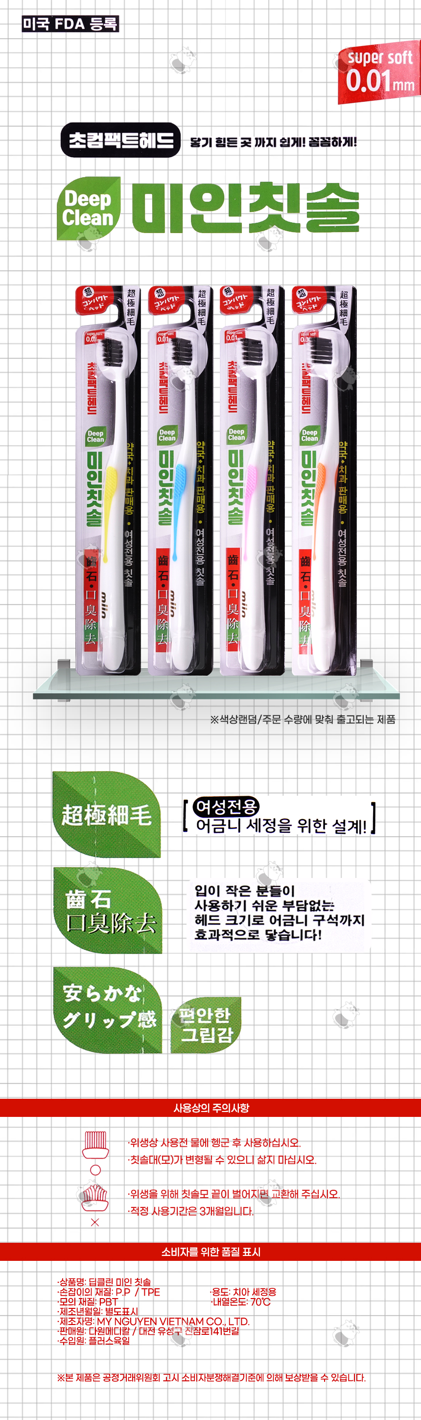 딥클린 미인 칫솔 (여성전용 칫솔/색상랜덤) 세트 24EA