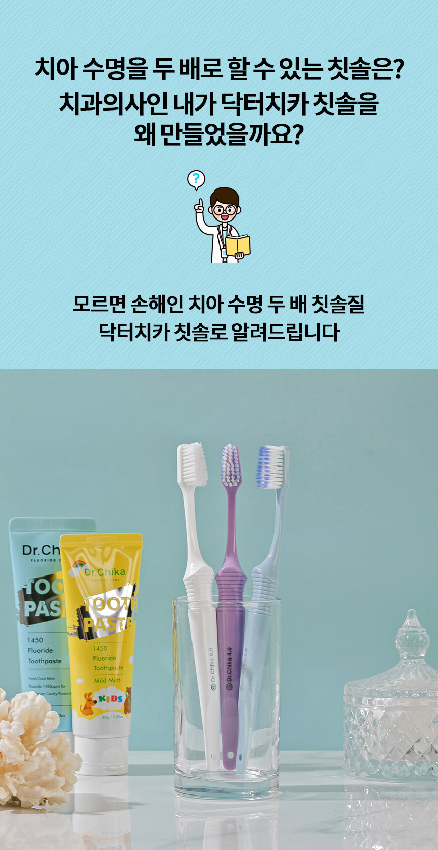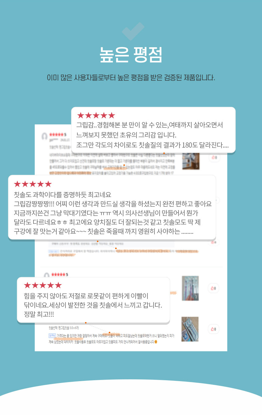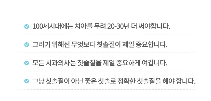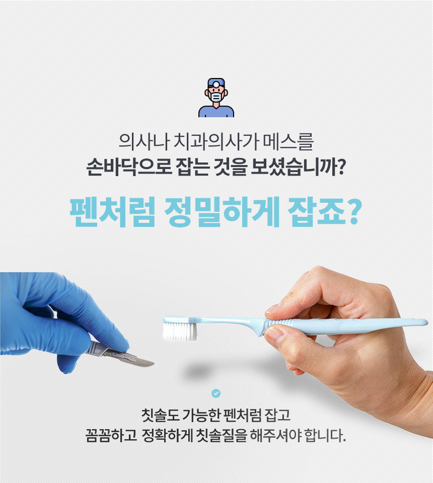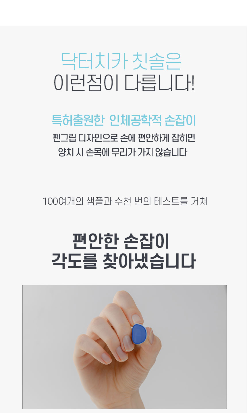 - 경력 20년이 넘은 치과의사가 수천 개의 칫솔을 테스트 해 보며 직접 개발한 제품