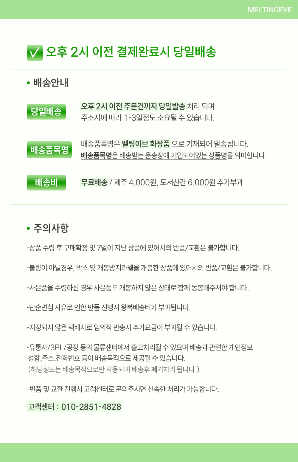 - 제품 하자 및 오배송: 제품 수령 후 3개월 이내 또는 하자를 발견한 날로부터 30일 이내 (배송비 편한가몰 부담)