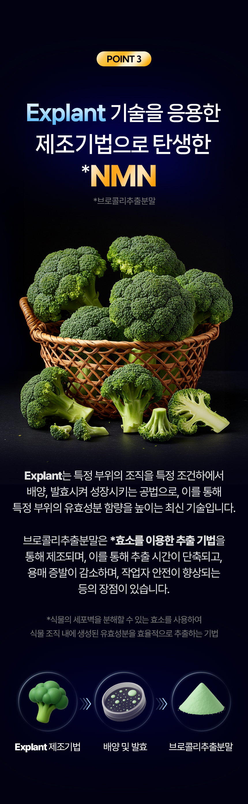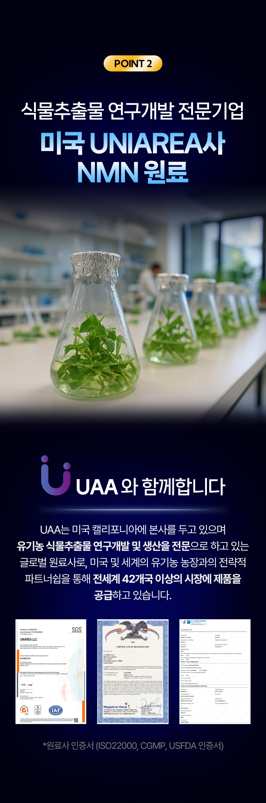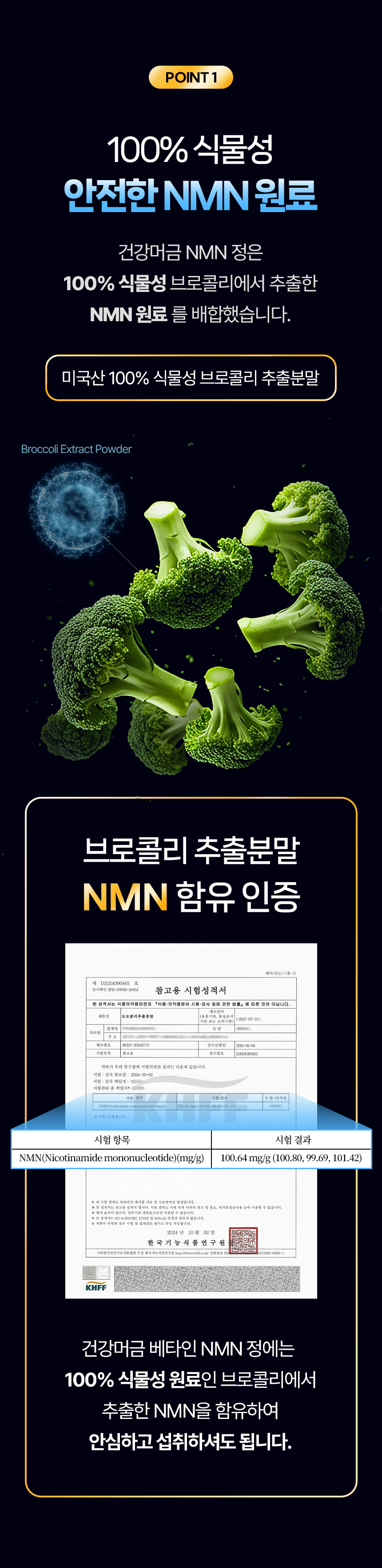 ◾ 브로콜리 유래 100% 식물성 NMN 및 미국 UNIAREA사의 프리미엄 원료 사용