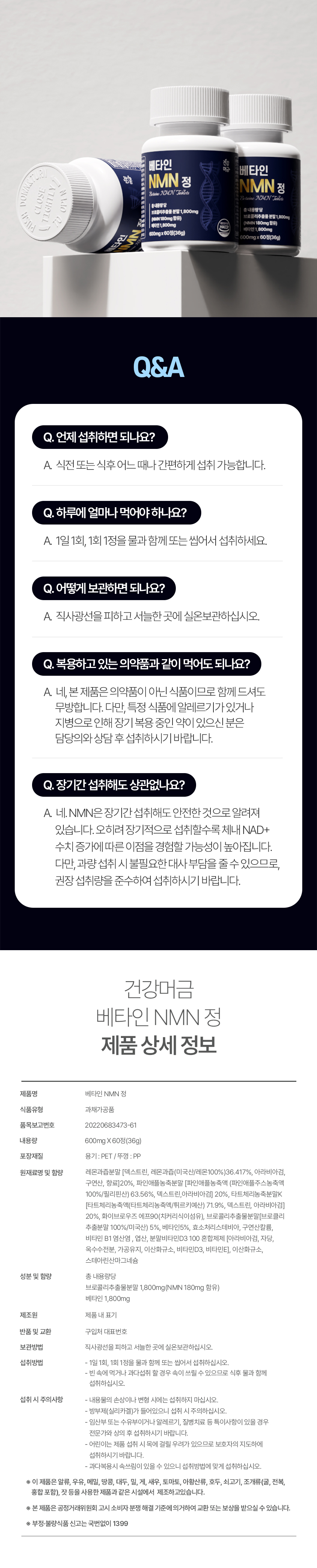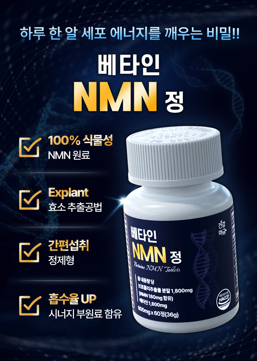 건강머금 식물성 NMN 엔엠엔 NAD+ 베타인 60정오늘출발