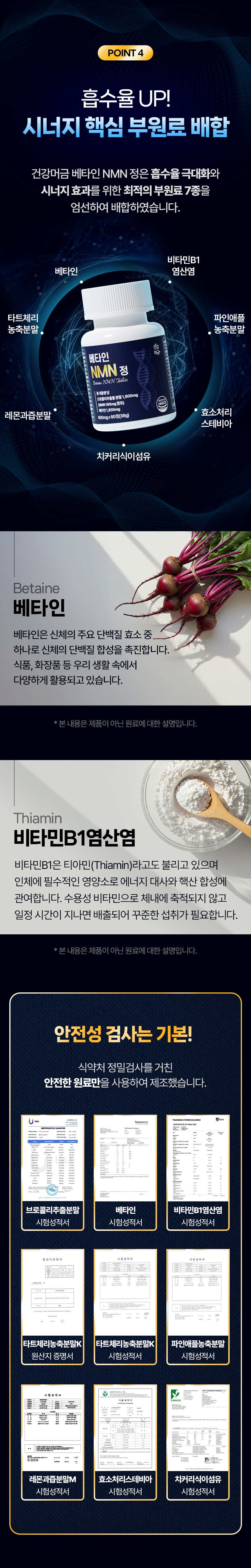 ◾ 단백질 활성을 촉진하는 베타인 및 에너지 대사 핵심인 비타민B1 등 7종 시너지 배합