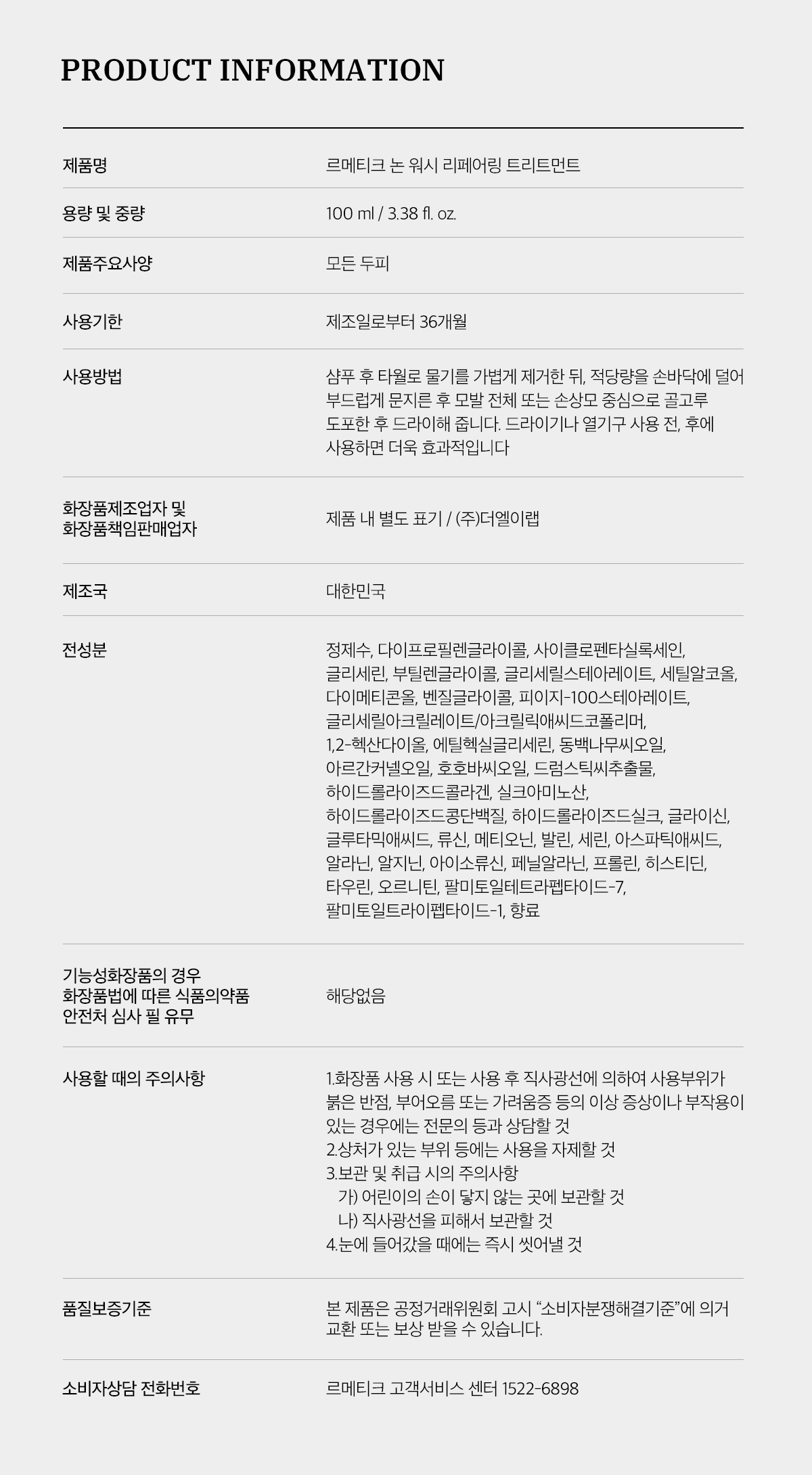 논워시 리페어링 트리트먼트