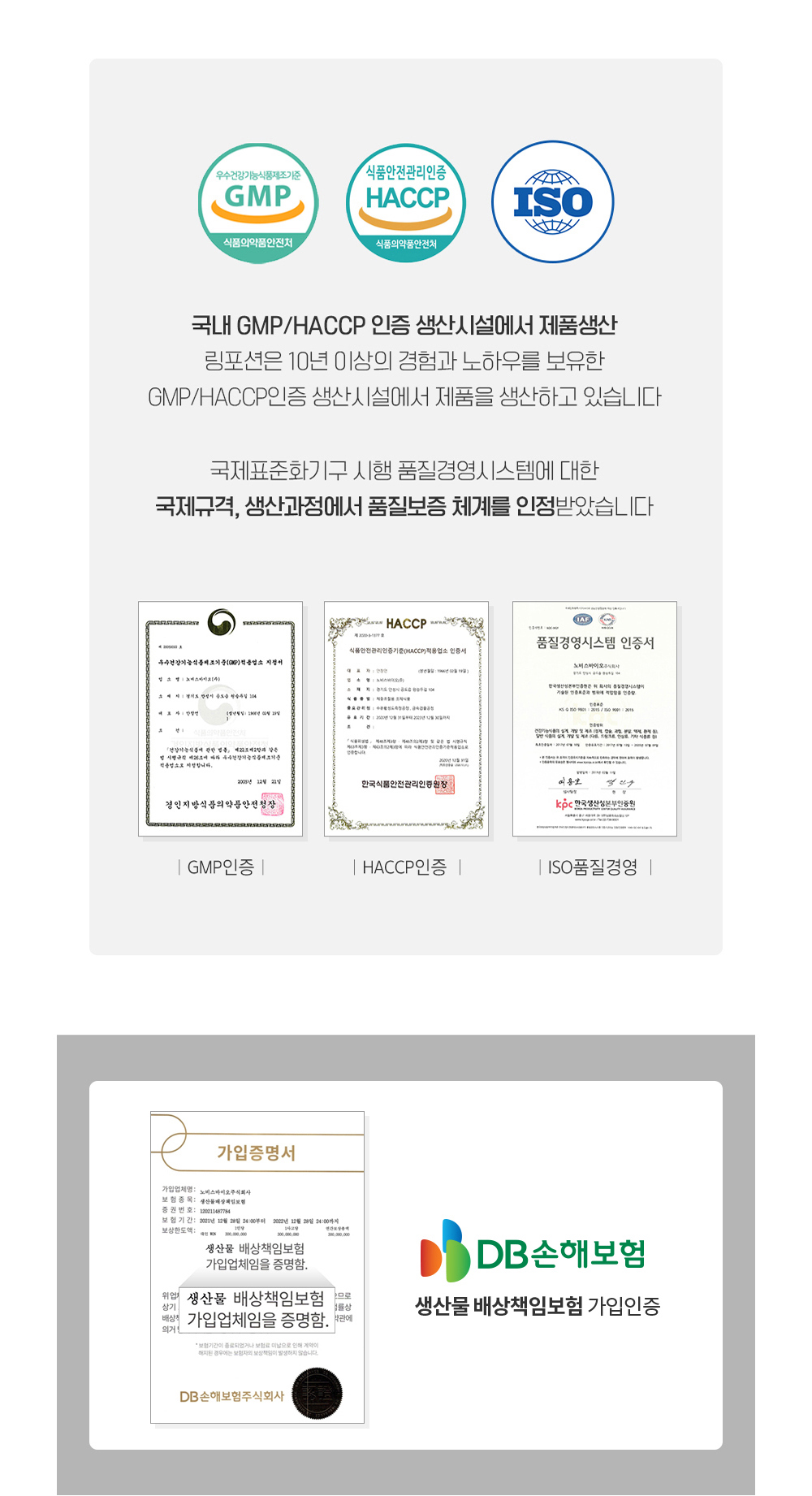 ◾아연100% / 비타민C 500% / 비타민B6 100% / 비타민B1 100% / 비타민B3 30% / 비타민B5 30% 함유