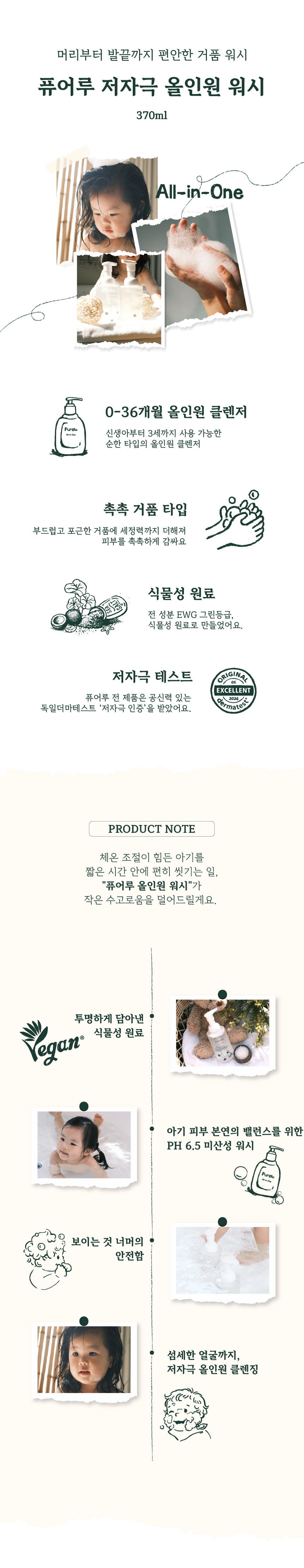 퓨어루 바디워시&샴푸&폼클렌징(3in1) 370ml