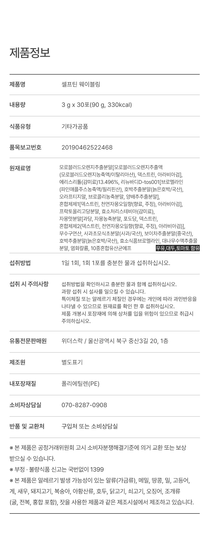 - 유통기한 3개월 이상 남은 제품에 한하여, 구매일 기준 14일 이내 반품 신청 가능합니다.