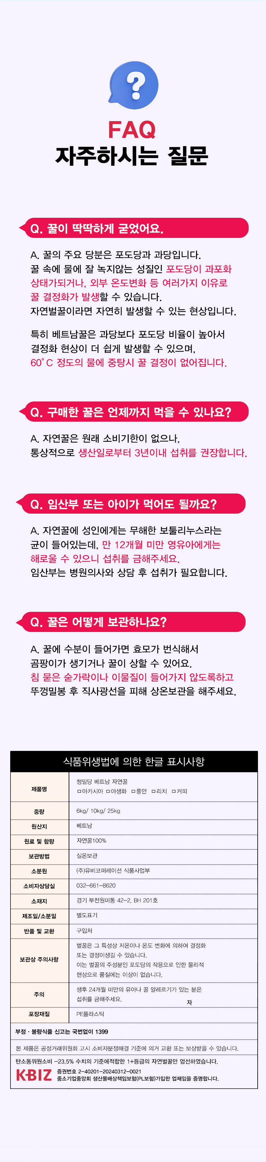 청밀당 베트남 천연벌꿀 대용량 말통 6kg / 10kg / 25kg