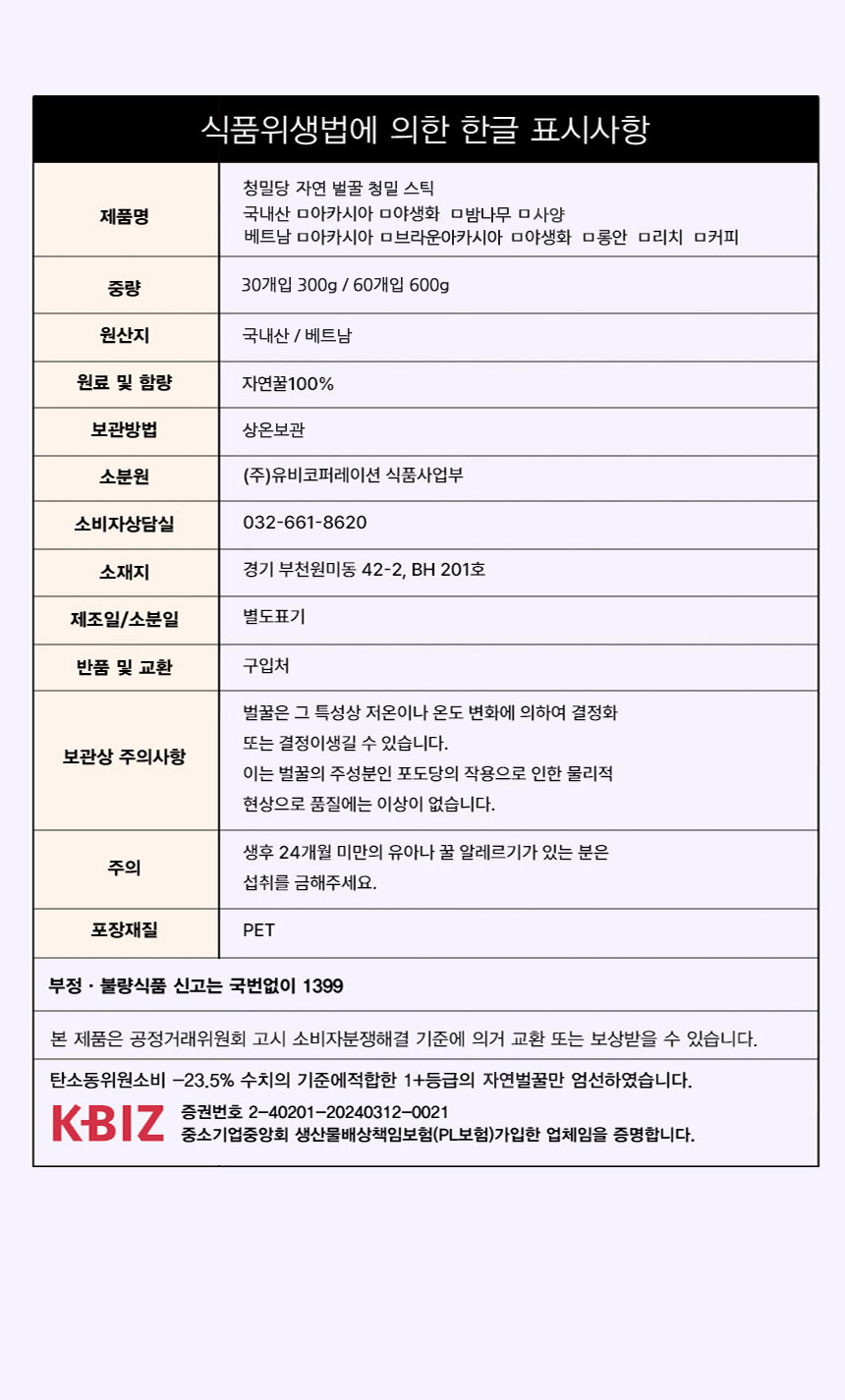 청밀당 꿀스틱 박스형 베트남 30개 / 60개