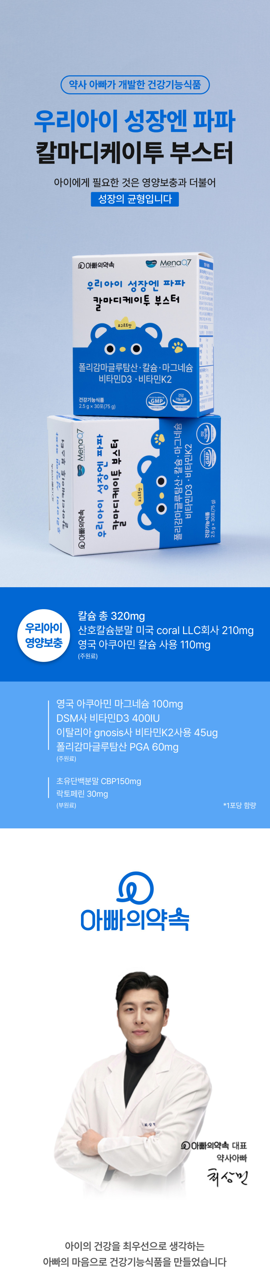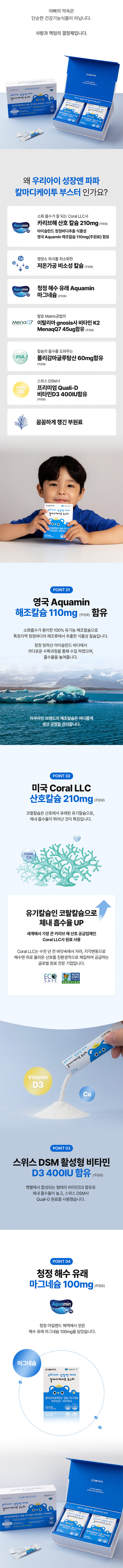 - 미국 코랄사 산호칼슘 210mg 과 아쿠아민 칼슘 110mg 총 320mg함유
