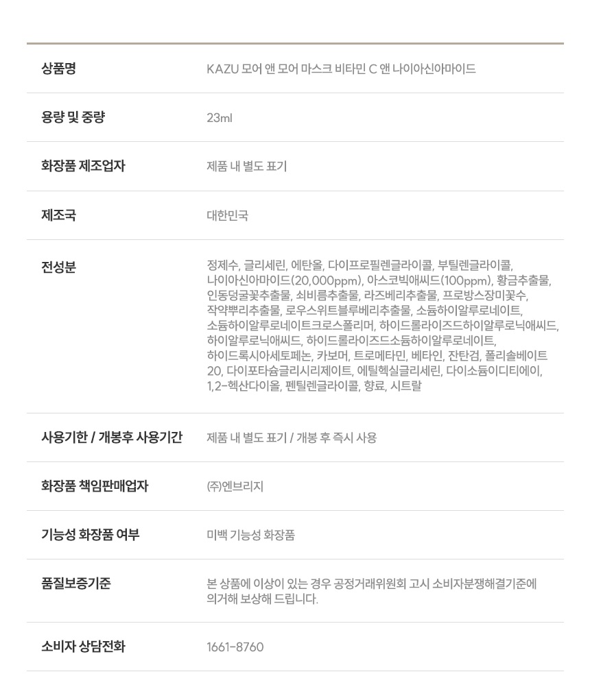 • 카주 모어 앤 모어 마스크 비타민 씨 앤 나이아신아마이드