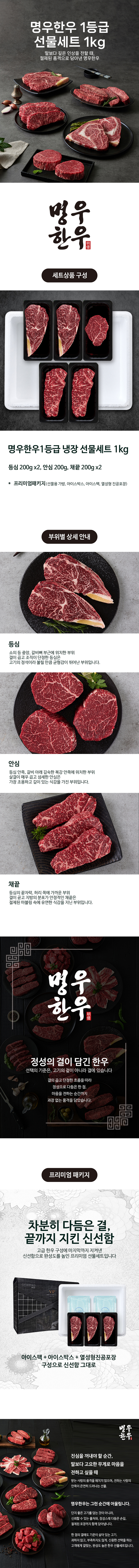 [명우한우] 한우1등급 냉장 선물세트 1kg (등심 400g, 안심 200g, 채끝 400g)