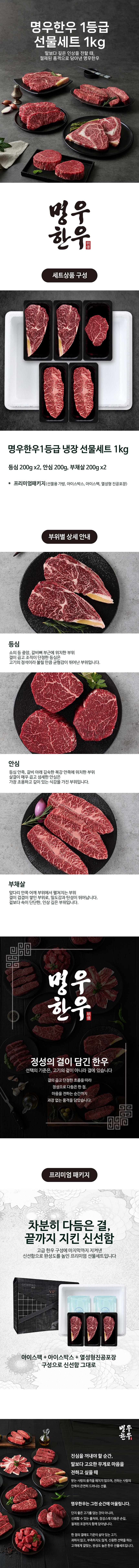 [명우한우] 한우1등급 냉장 선물세트 1kg (등심 400g, 안심 200g, 부채살 400g)