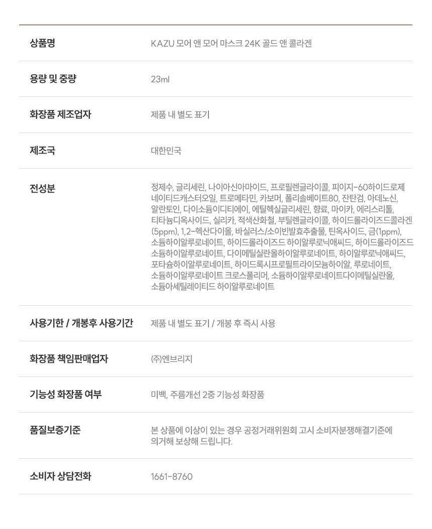 • 카주 모어 앤 모어 마스크 24케이 골드 앤 콜라겐